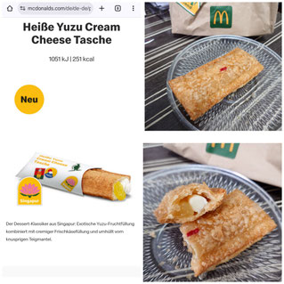 In der USA gibt es im Herbst in einigen McDonalds Filialen eine Tasche gefüllt mit gewürzter Kürbiscreme und Cream Cheese. Sie hatten ein guten Kürbisgeschmack, der mir fast schon zu intensiv war. Die Gewürze waren eher im Hintergrund. Die Cream Cheese war mir allerdings zu süß. Außen war sie wie immer knusprig.