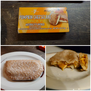 Ich habe dann ein Jag´hr später noch das Pie dazu gefunden. Doch hier war die Kürbiscreme noch weniger gewürzt, so dass es nur nach Kürbis und der Frischkäsecreme geschmeckt hat. Dieser Pie soll in der Mikrowelle für 15-20 Sekunden erwärmt werden. Die Tasche bleibt dabei knusprig, doch innen wird es warm. Der Mürbeteig war gesüßt, nichts Besonderes, aber eine gute Hülle für die Füllung. Die Glasur ist sehr krümlig und ging leicht von den Gebäck ab. Ich hätte sie auch nicht gebraucht. Es wäre eine gute Tasche gewesen, wenn sie einfach mehr nach Pumpkin Spice geschmeckt hätte.