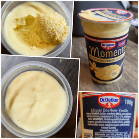 Die Mousse ist wie die anderen Mousse luftig und süß ich möchte den Geschmack der Vanille. Es ist eine normale Mousse, doch eine gute und eigenartig das Vanillemousse erst jetzt im Sortiment ist.