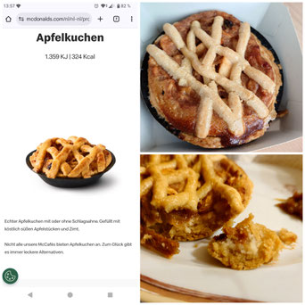 - Zutaten: Apfel, Weizenmehl, Zucker, 9 % Butter, 4 % Mandel, Wasser, Ei, Rosinen, Ei, Maisstärke, modifizierte Maisstärke, modifizierte Kartoffelstärke, Molkenpulver, Zimt, Backtriebmittel (E500ii), Salz, Stabilisatoren (E466, E420, E516, E339, E450), Rapsöl, Dextrose, Sonnenblumenöl, Verdickungsmittel (E415, E401), natürliches Aroma, Zitrusfasern, Kokosöl, Palmöl, Laktose, Glukosesirup, Milcheiweiß, Aroma, Emulgator (E472b, Baumwollsamenöl)