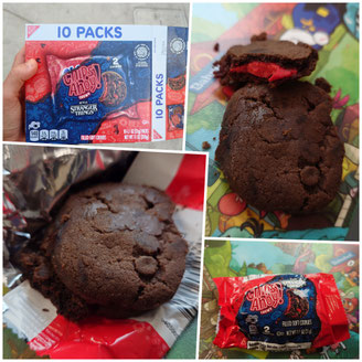 In der USA gab es Kekse von Stranger Things und bei uns einen Kuchen. Doch ich muss sagen der Kuchen ist besser gelungen. Die Kekse waren mir etwas zu trocken und schmeckten nach süßen Kakaokeks. Die Schokoladenstücke waren etwas herb und fest, aber o.k.. Doch die Erdbeercreme war auch fest und sehr künstlich. Hier wäre eine weiche Creme besser gewesen und ein besserer Kontrast zu den trockenen Keks. Außerdem war sie mir wiegesagt zu künstlich süß. Es waren immer zwei in einer Packung, was sie gut als Mitbringsel machten.